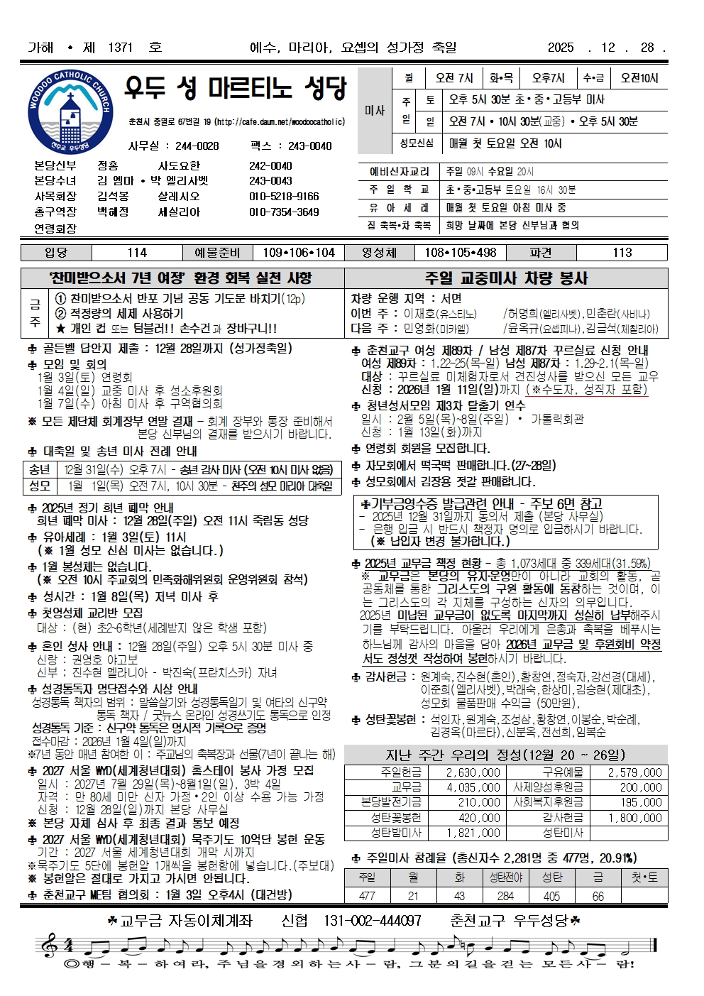 우두 - 2025년 12월 28일 예수,마리아,요셉의 성가정 축일