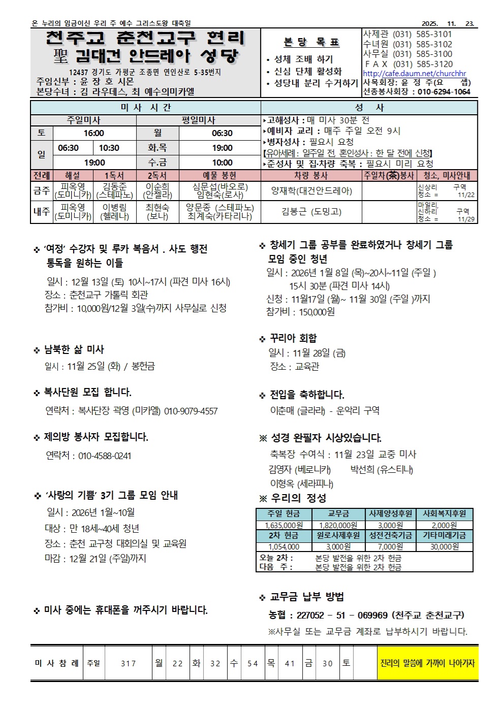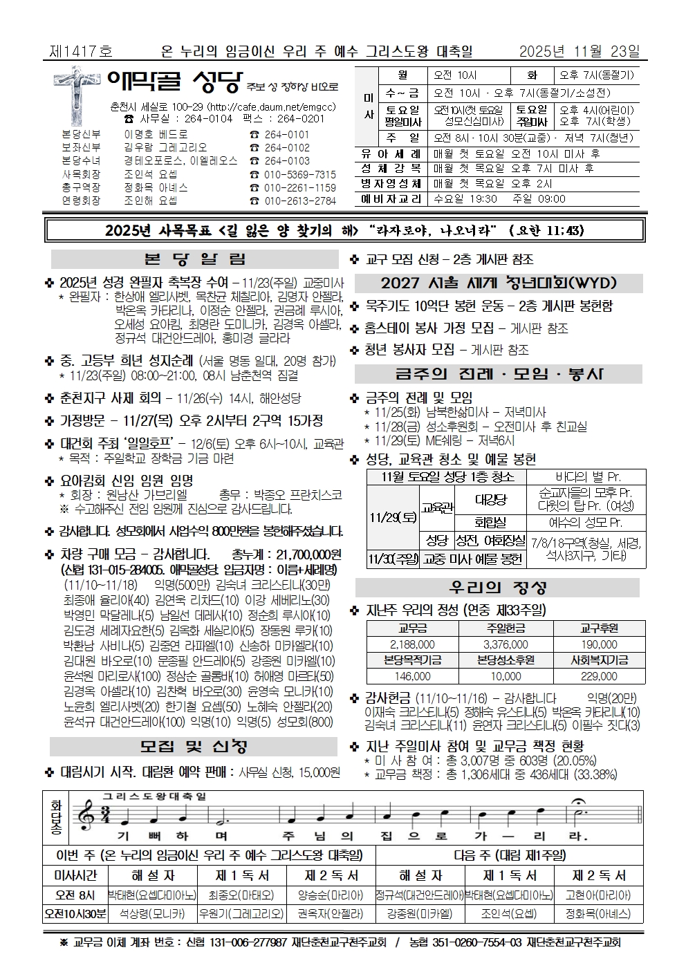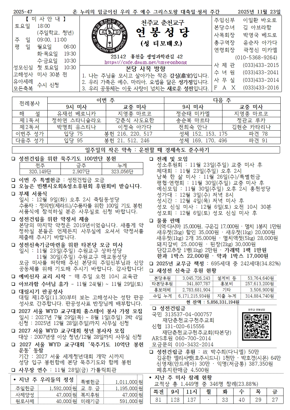 연봉 - 2025년 11월 23일 온 누리의 임금이신 우리 주 예수 그리스도왕 대축일·성서 주간