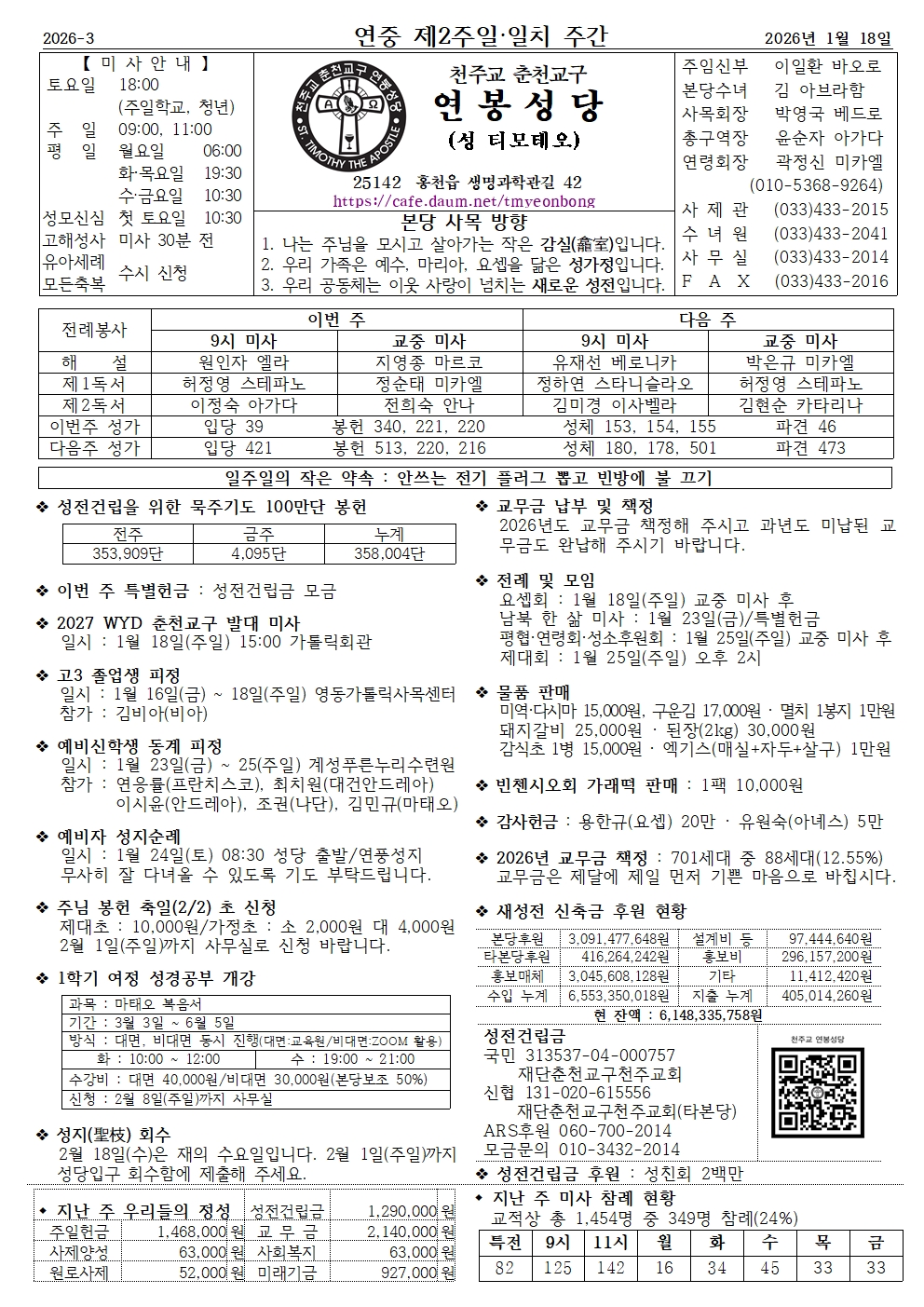 연봉 - 2026년 1월 18일 연중 제2주일·일치 주간