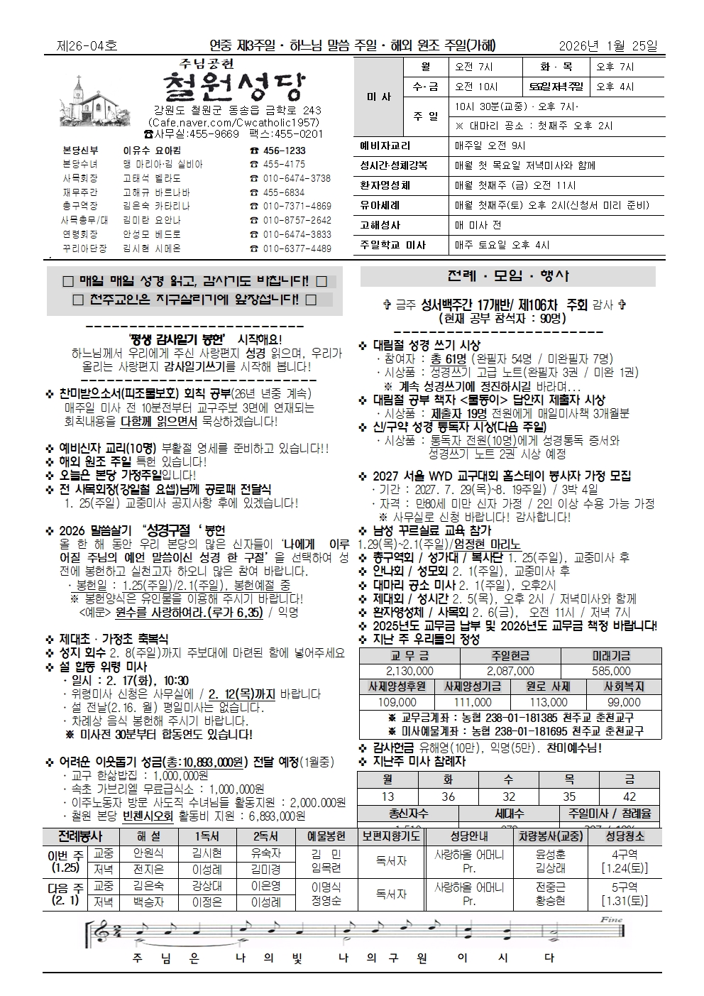 철원 - 2026년 1월 25일 연중 제3주일(하느님의 말씀 주일 . 해외 원조 주일)가해