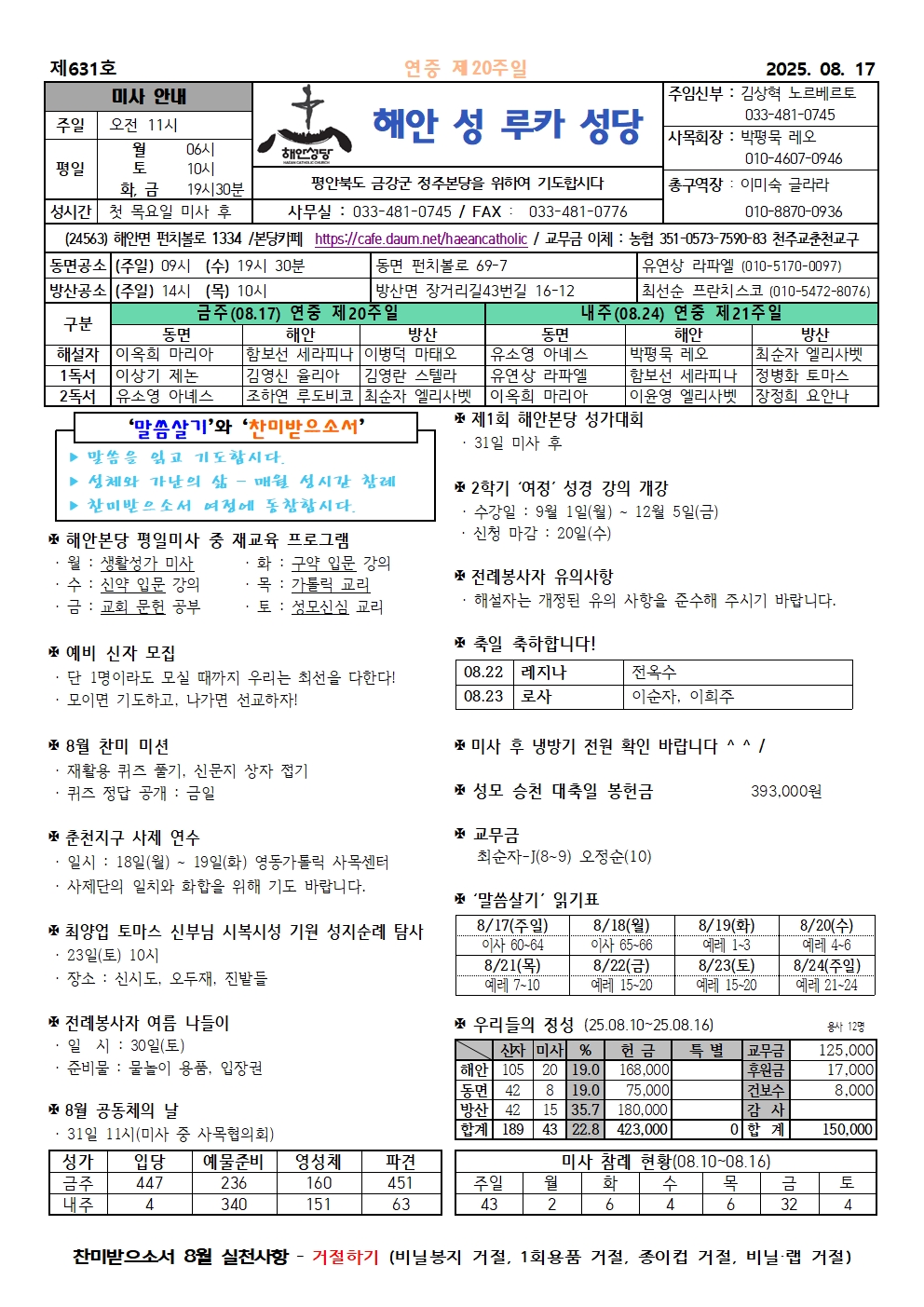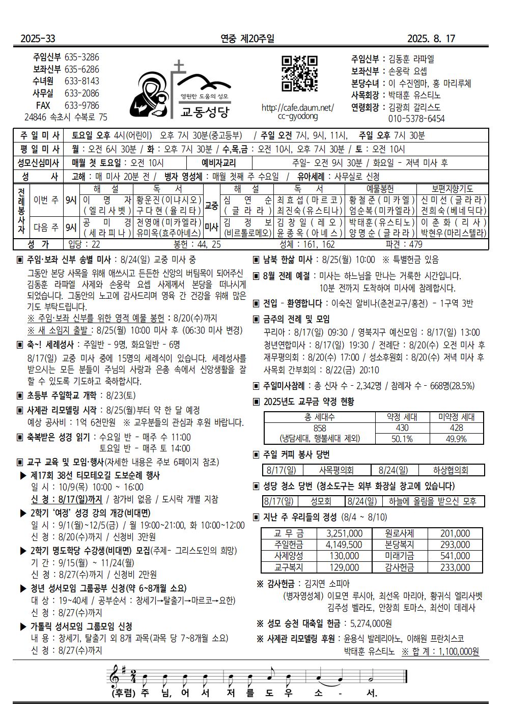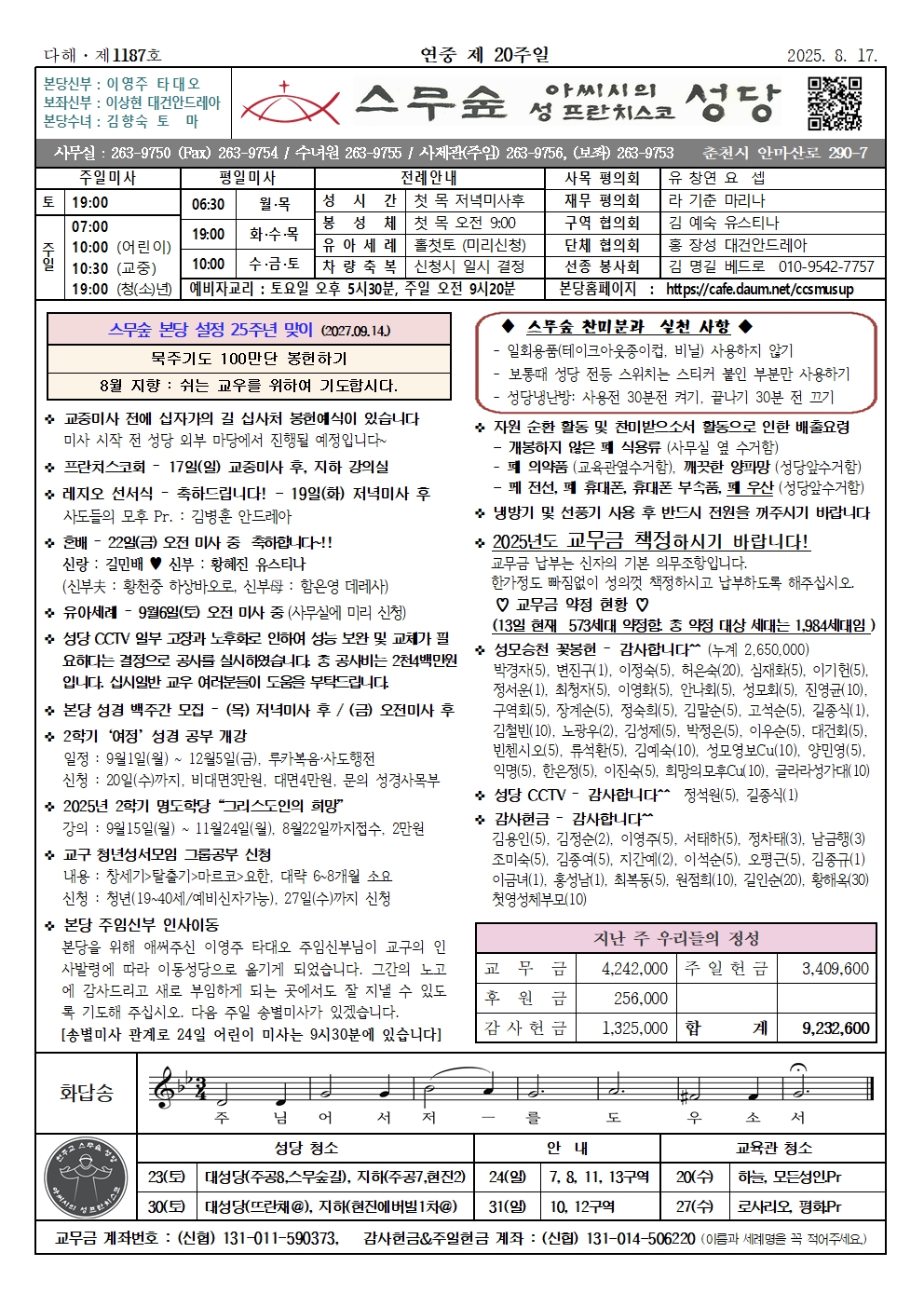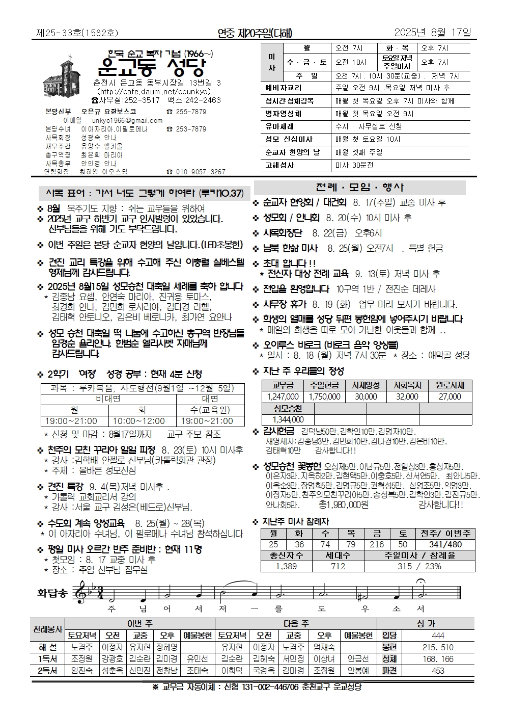 운교동- 2025년8월17일 연중 제20주일(다해)