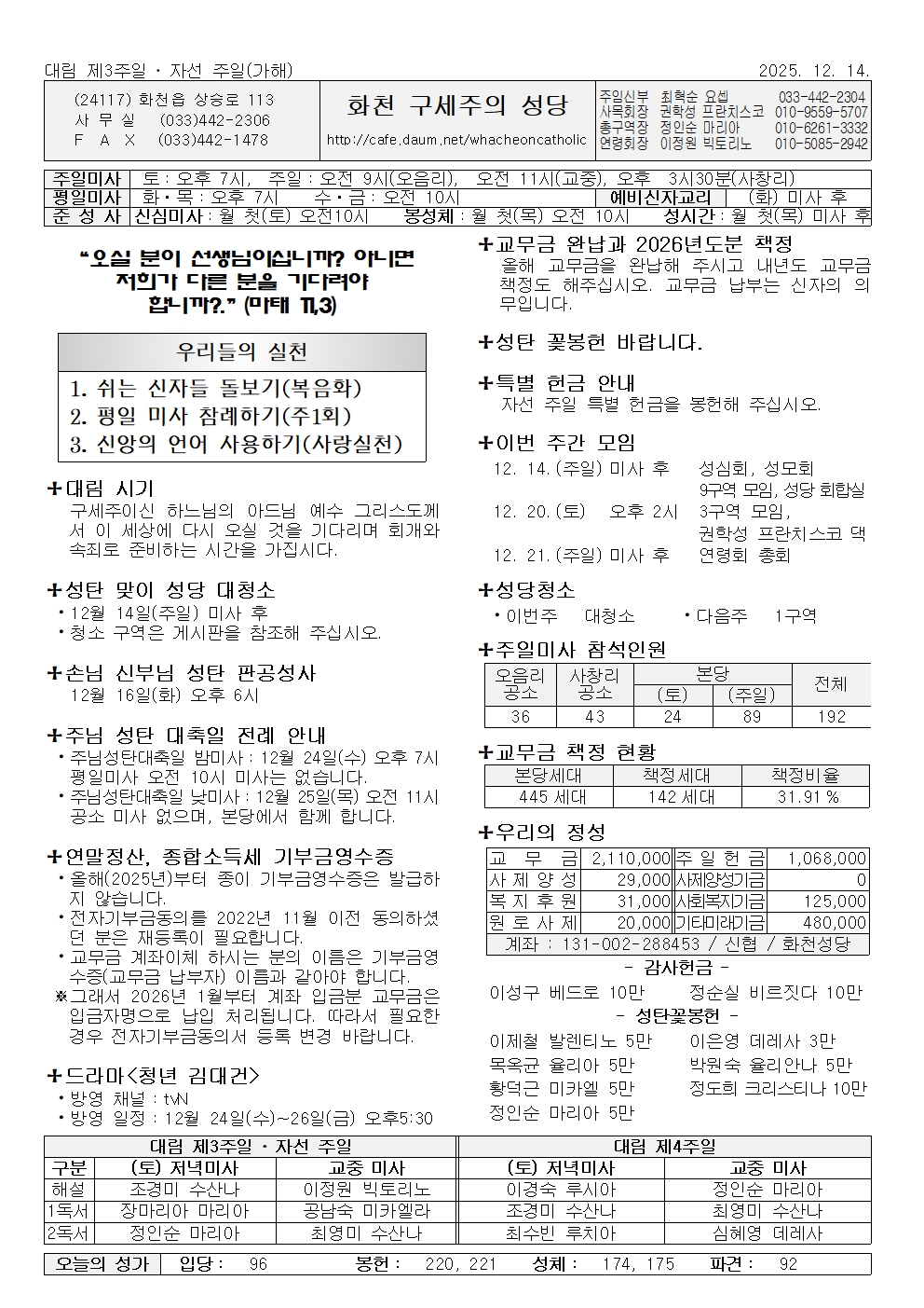 화천 - 2025년 12월 14일 대림 제3주일, 자선 주일