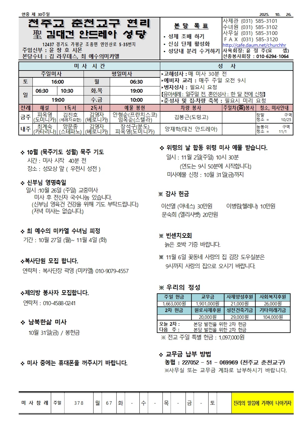 물치-2025년 10월 26일 연중제30주일