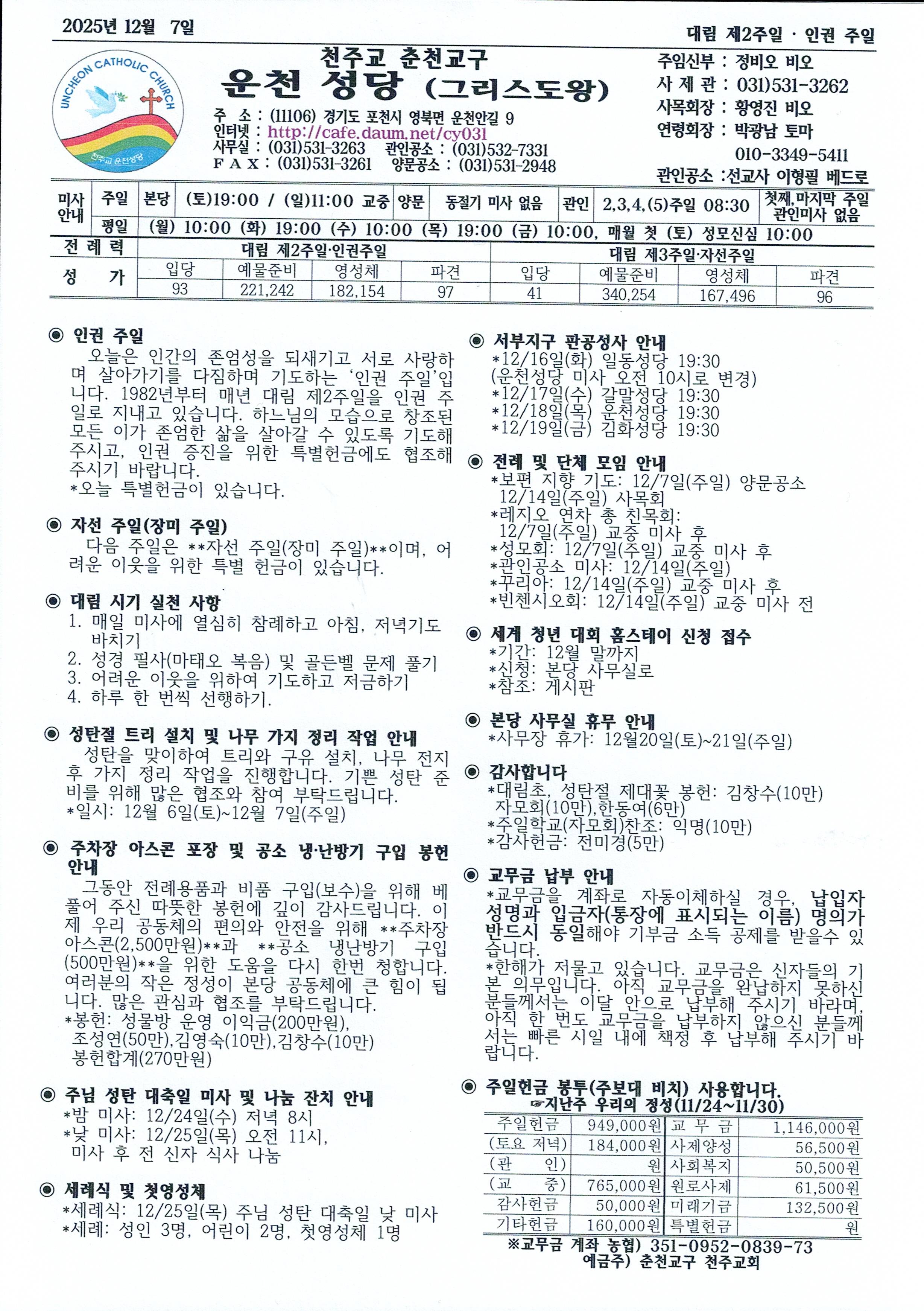 운천-2025년 12월 7일 대림 제2주일 (인권 주일)