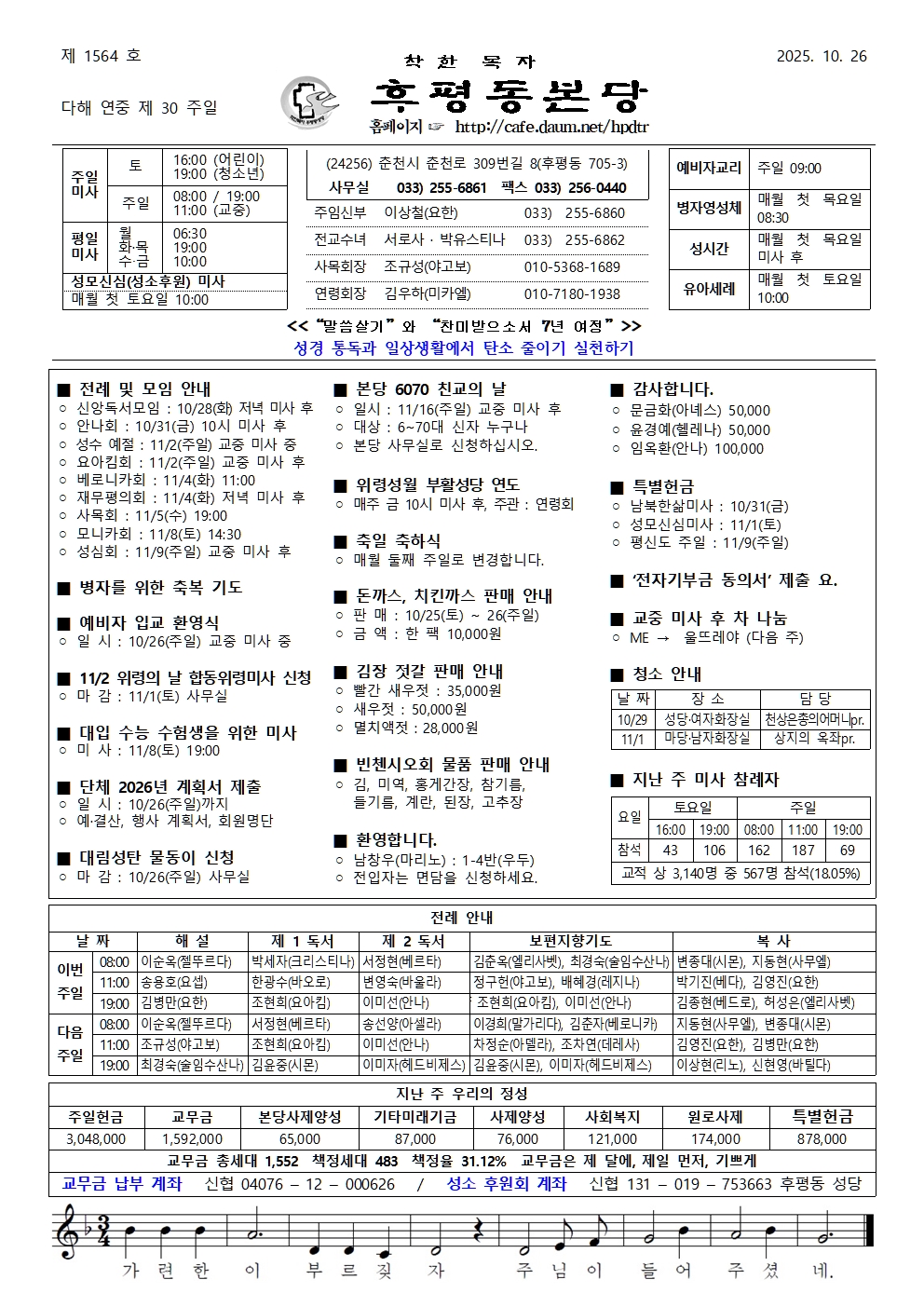 1564 후평동-2025년 10월 26일 연중제30주일.hwp