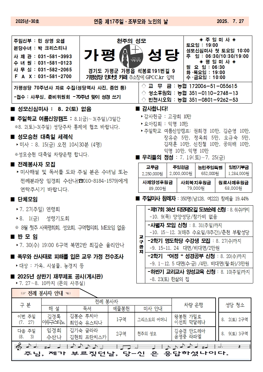 가평 - 2025. 7. 27 연중 제17주일ㆍ조부모와 노인의 날