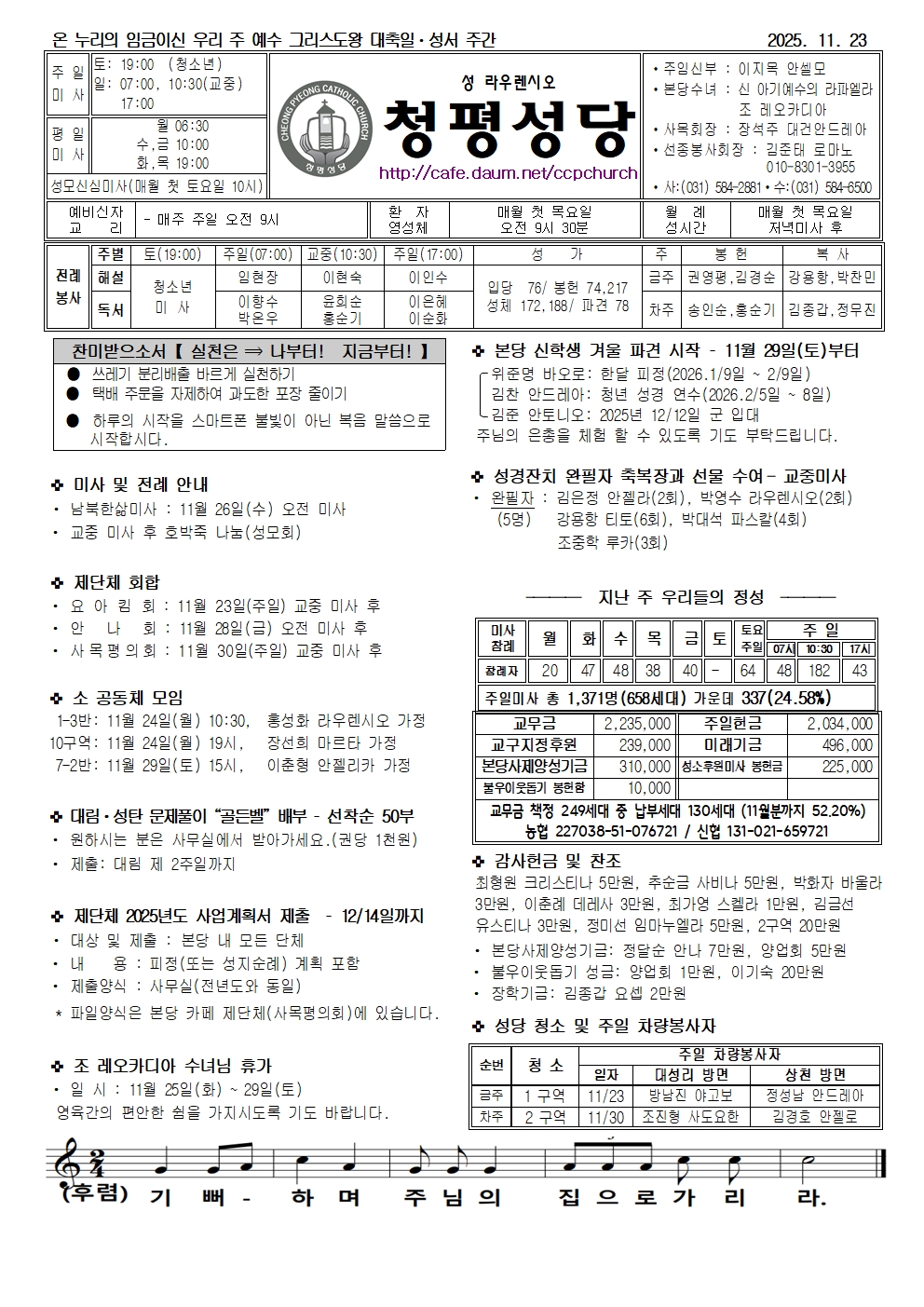 청평 - 2025년 11월 23일 온 누리의 임금이신 우리 주 예수 그리스도왕 대축일ㆍ성서 주간