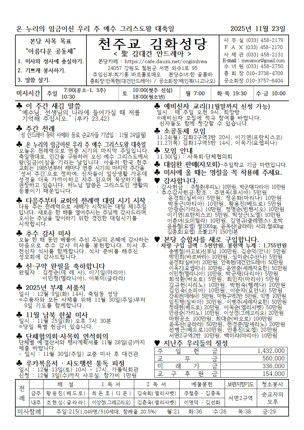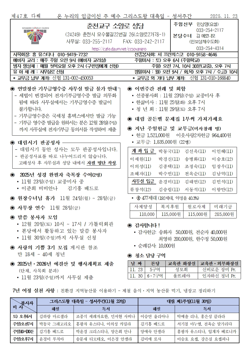 연봉 - 2025년 11월 23일 온 누리의 임금이신 우리 주 예수 그리스도왕 대축일·성서 주간