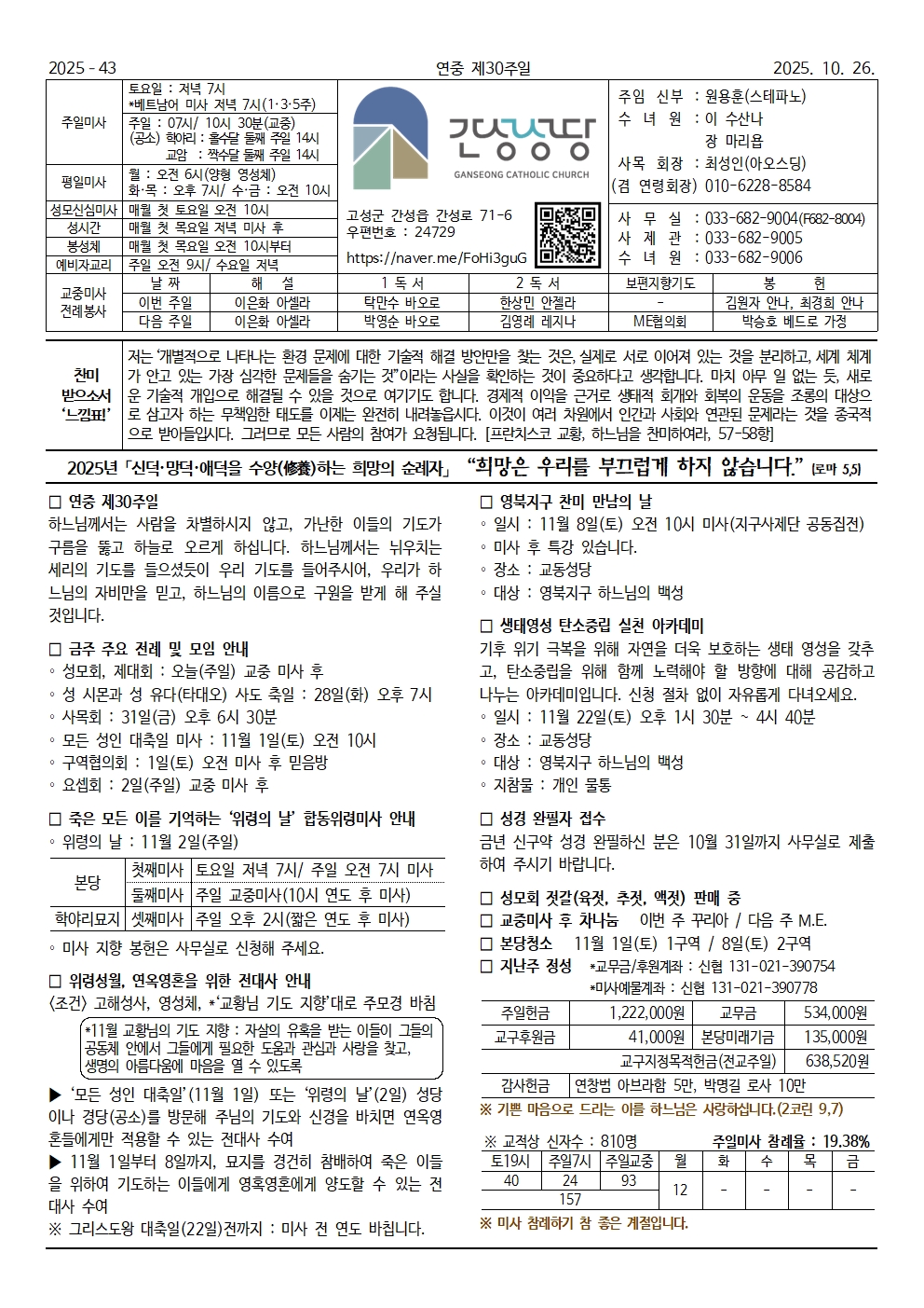 양구 - 2025년 10월 26일 연중 제30주일