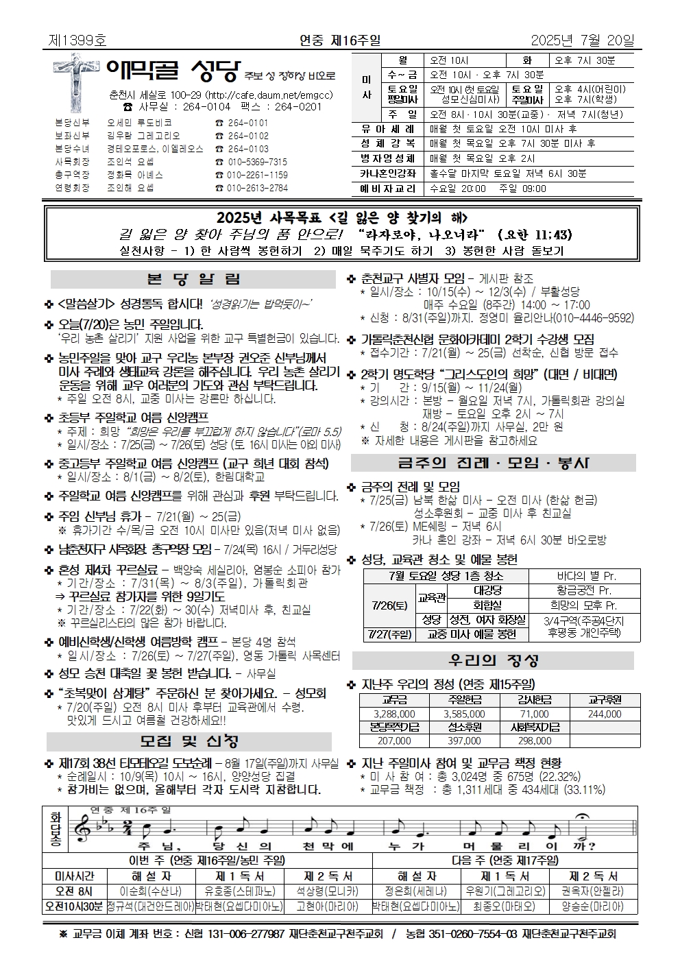 청평 - 2025년 7월 20일 연중 제 16주일 ㆍ 농민 주일