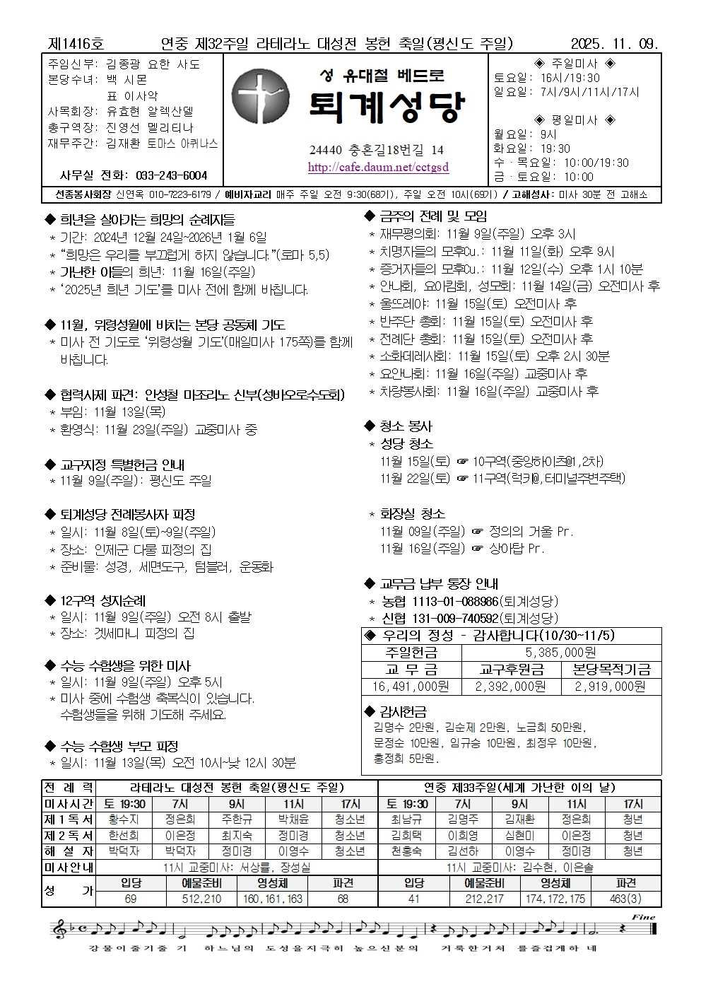퇴계-2025년 11월 9일 연중 제32주일 라테라노 대성전 봉헌 축일(평신도 주일)
