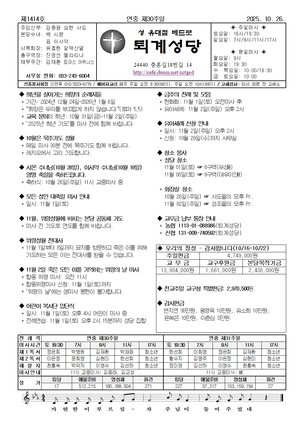 퇴계 - 2025년 10월 26일 연중 제 30주일