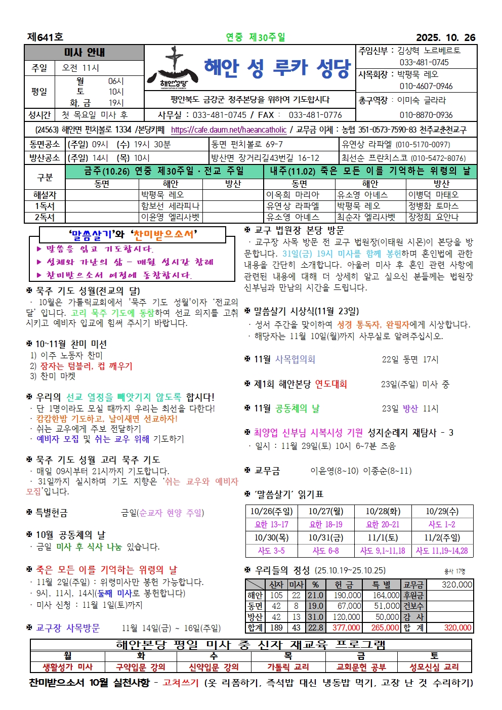 철원 - 2025년 10월 26일 연중 제30주일(다해)